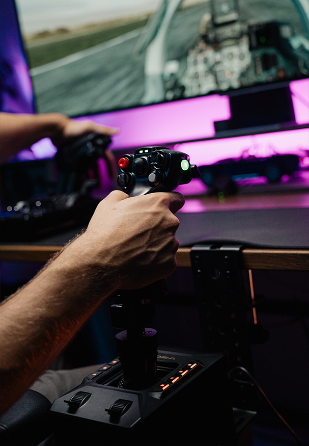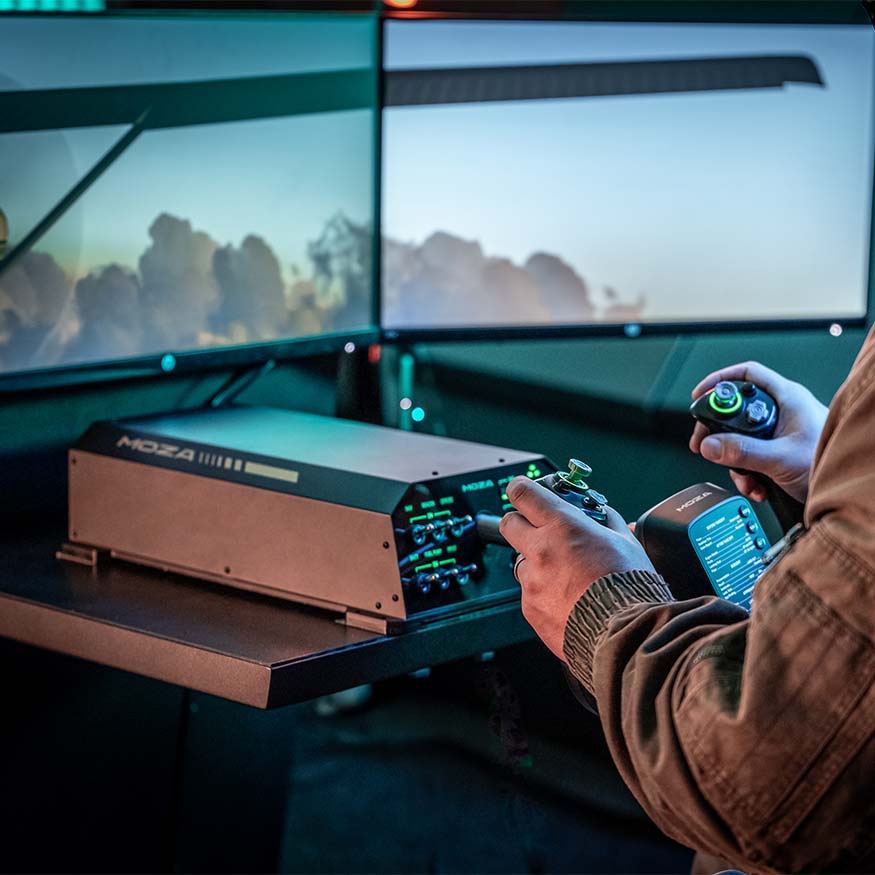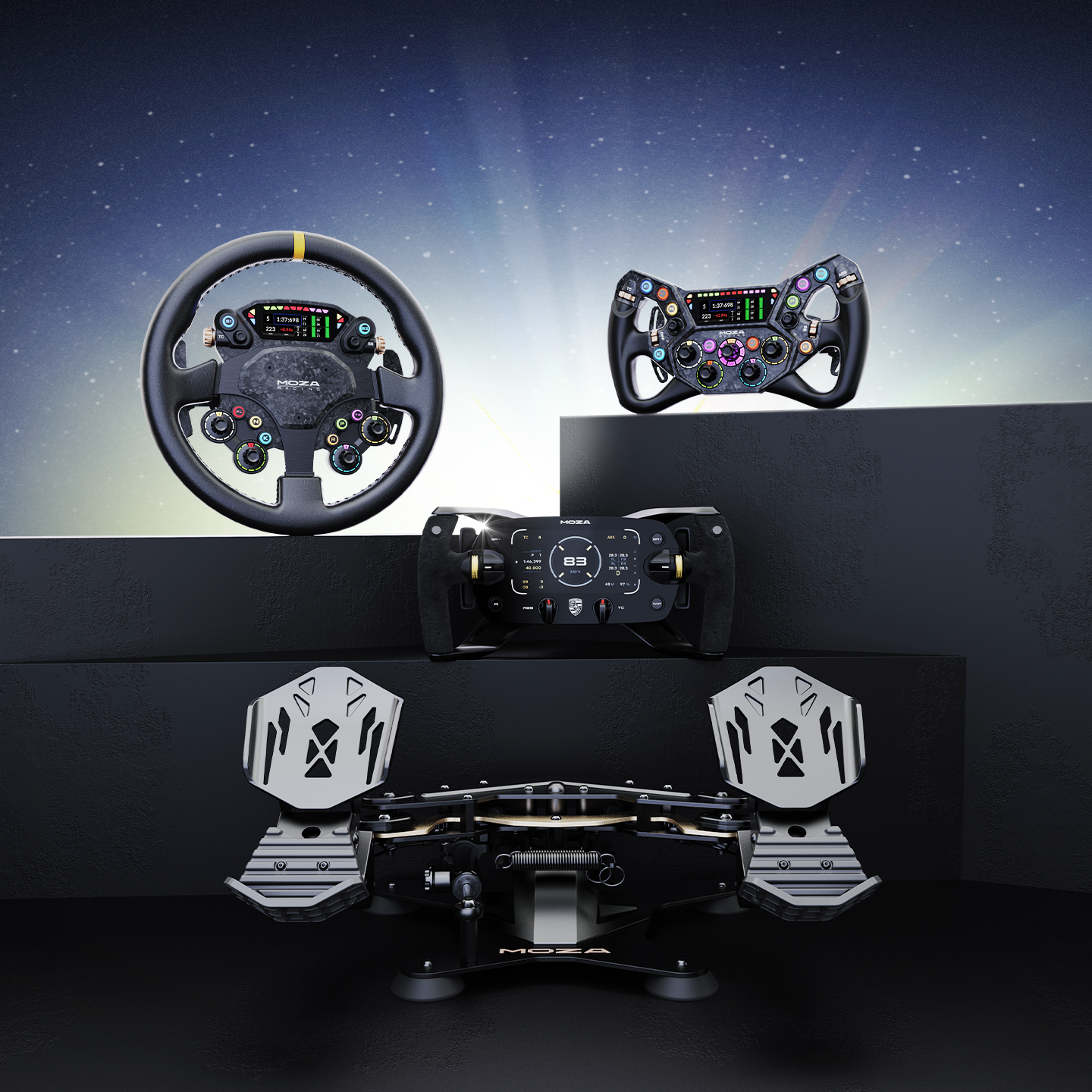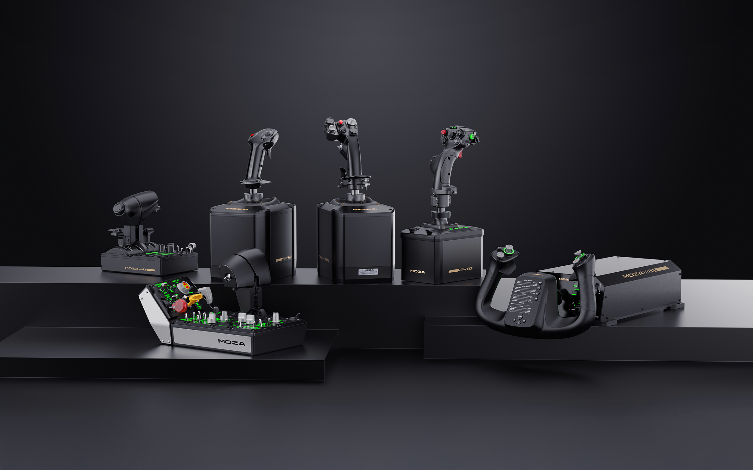 MOZA Racing Setups: Precision and Immersion, On Track and In Flight.