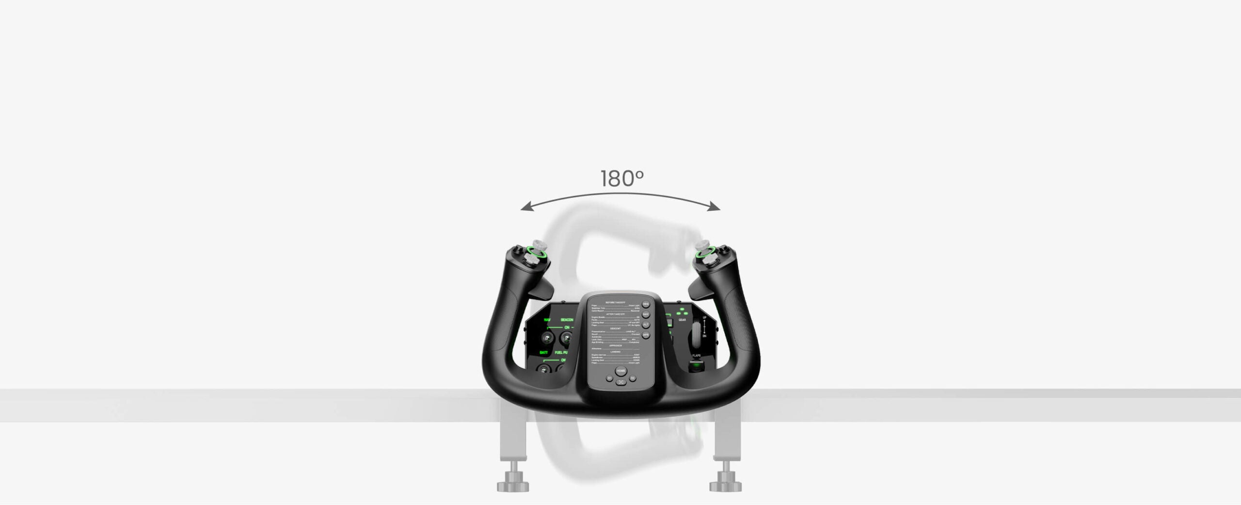 | Mounting Options | Desktop clamp (optional), suspended desktop clamp (optional), direct mounting on a simulator cockpit |