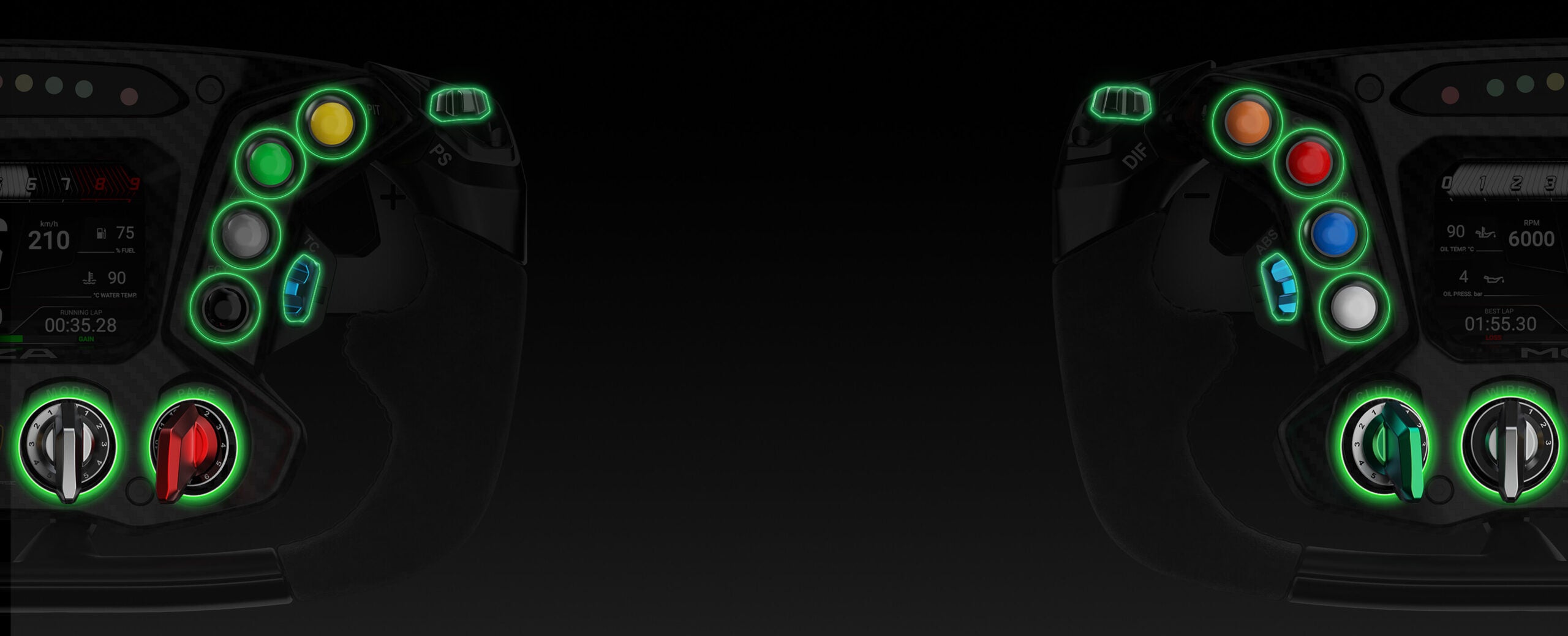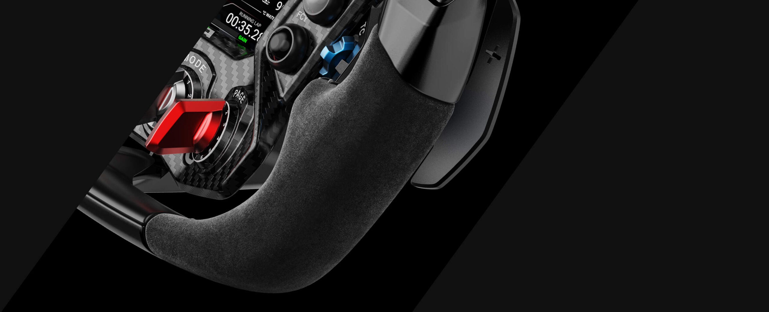This premium sim racing wheel replicates the steering wheel of the Automobili Lamborghini Essenza SCV12 hypercar, a limited edition masterpiece with just 40 cars built.