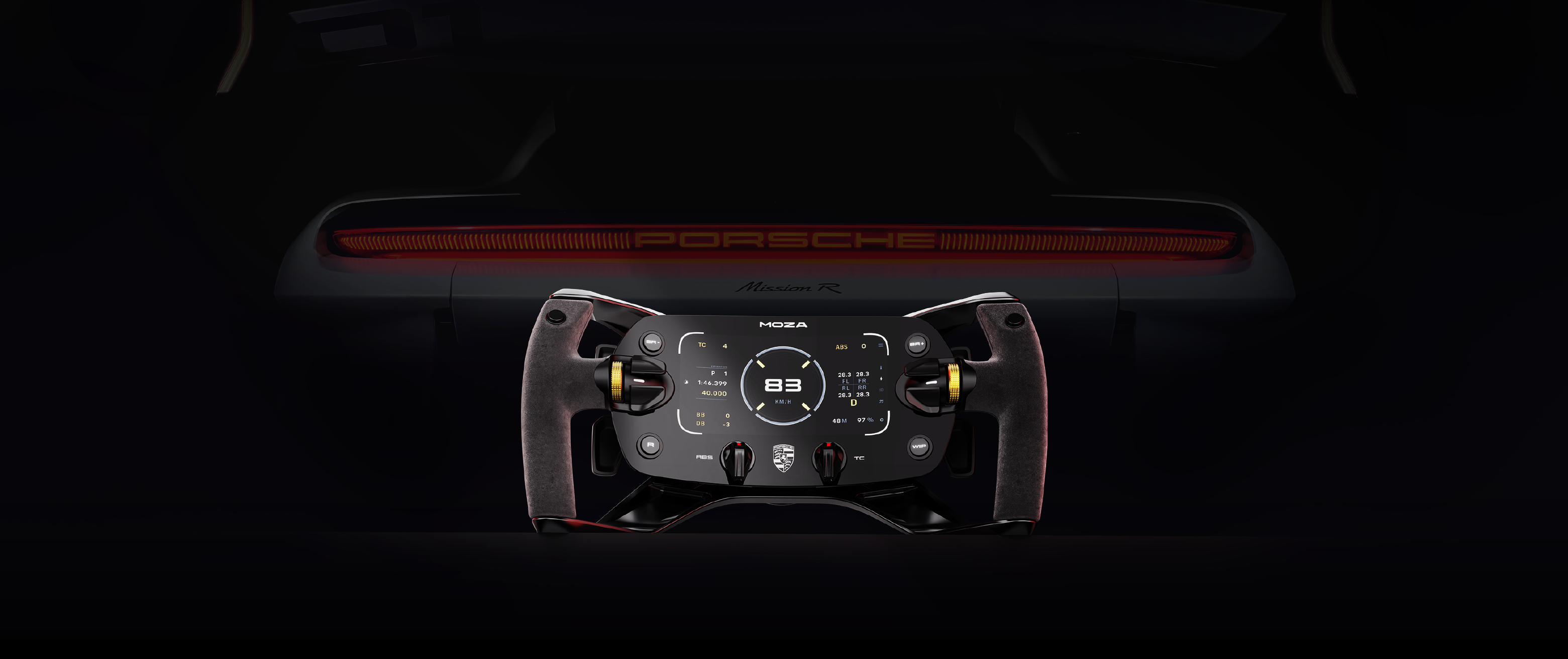 The MOZA Porsche Mission R Steering Wheel features an Ultra bright 5.4-inch flexible OLED display with 720P resolution, a 60 Hz refresh rate and a curved 300R, high-strength tempered glass screen. It provides real-time data on speed, lap times, tire pressure, battery status, ABS, and traction control. Notably, it's the first sim racing wheel to incorporate a flexible OLED display.