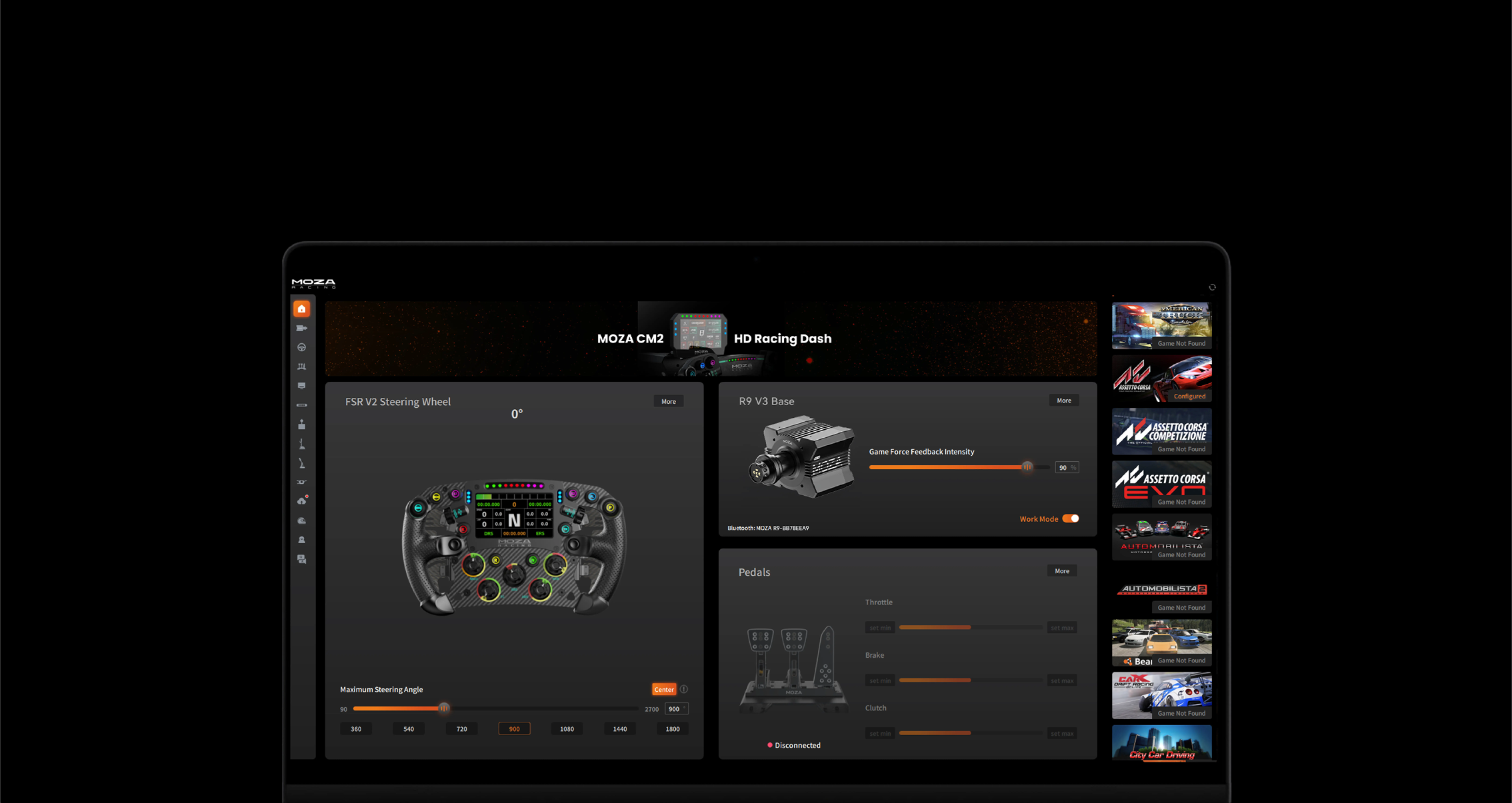 | Box Contents | R12 Wheel Base, User manual, Warranty card, Power supply, USB cable, Toolkit |