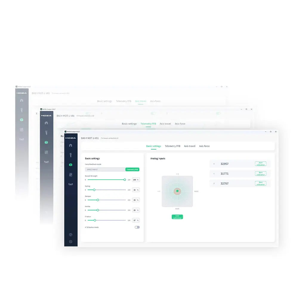The MOZA AB9 Base is equipped with dual servo motors delivering a peak torque of 12Nm, offering precise, dynamic feedback that simulates various flight conditions such as taxiing, takeoff, landing, and turbulence. Featuring our proprietary MCLS Force Feedback Technology and high-resolution encoder, it provides an exceptionally accurate and immersive flight experience. Constructed from aviation-grade aluminum alloy with a quiet, fanless design, it ensures durability and seamless operation. The MOZA Cockpit Control Software allows comprehensive customization and fine-tuning of settings. Compatible with leading flight simulation games and supporting third-party flight sticks, the AB9 Base is designed for versatility and reliability, making it perfect for enthusiasts and professional trainers.