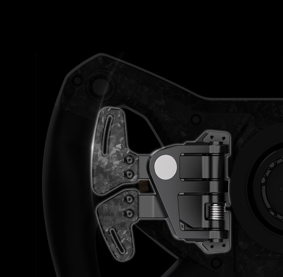 KS Pro Steering Wheel is a butterfly-style 300 mm GT wheel designed for high-intensity sim racing. With a customizable HD display, lightweight carbon fiber-reinforced construction, extensive programmable inputs, and professional RGB telemetry lighting, it delivers fast response, precise control, and a highly immersive driving experience.