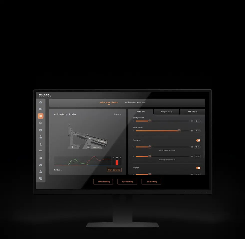 The MOZA mBooster Active Pedal redefines sim racing with realistic dynamic force feedback and precision control. It delivers unparalleled accuracy and responsiveness and features dual 200KG load cell sensors and a 21-bit high-resolution magnetic encoder. The high-torque density motor and MOZA Pit House software enable one-click customization for throttle, brake, or clutch functions. With adjustable pedal feel, real-time ABS, traction control, engine vibration, and G-force feedback, the mBooster ensures an immersive and true-to-life driving experience. Compatible with CRP2 pedals for enhanced performance and seamless integration with MOZA Racing ecosystems.