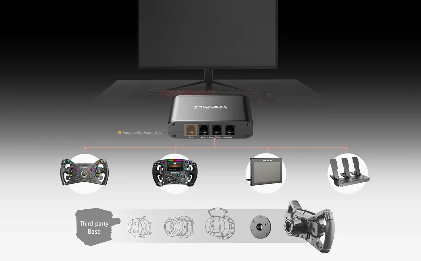 The MOZA Universal Hub Kit provides a versatile and reliable solution for integrating the MOZA steering wheel with various third-party bases, enhancing your simulation experience.